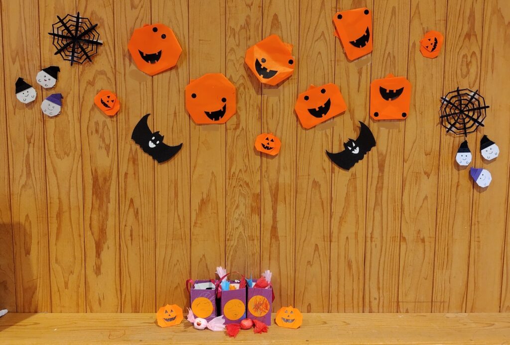 子どもたちが制作したハロウィンの飾りが、お部屋を明るく彩る。