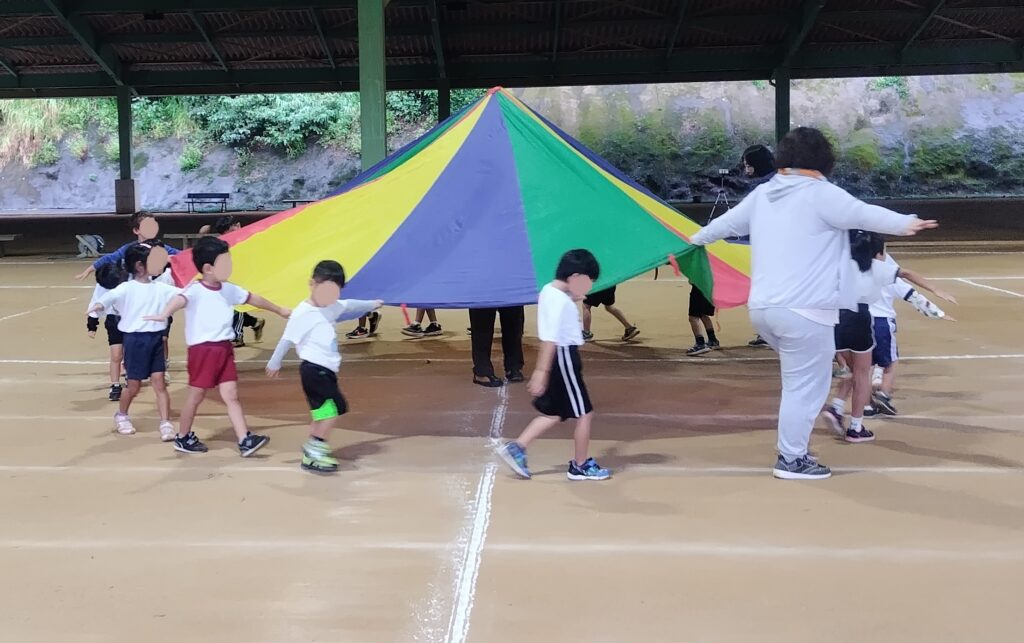 広い屋根付きの運動場で、思いきり体を動かせる環境に感謝。
