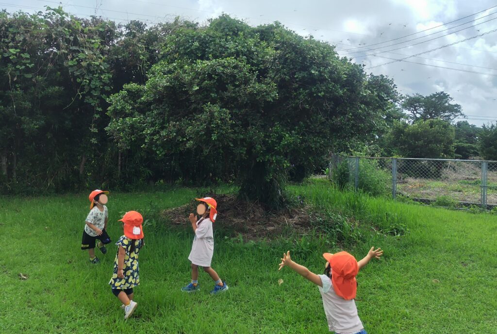 トンボを追いかけて、子どもたちは大はしゃぎ。