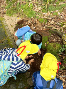 森の生き物や植物を観察するあゆみの森こども園の野外活動